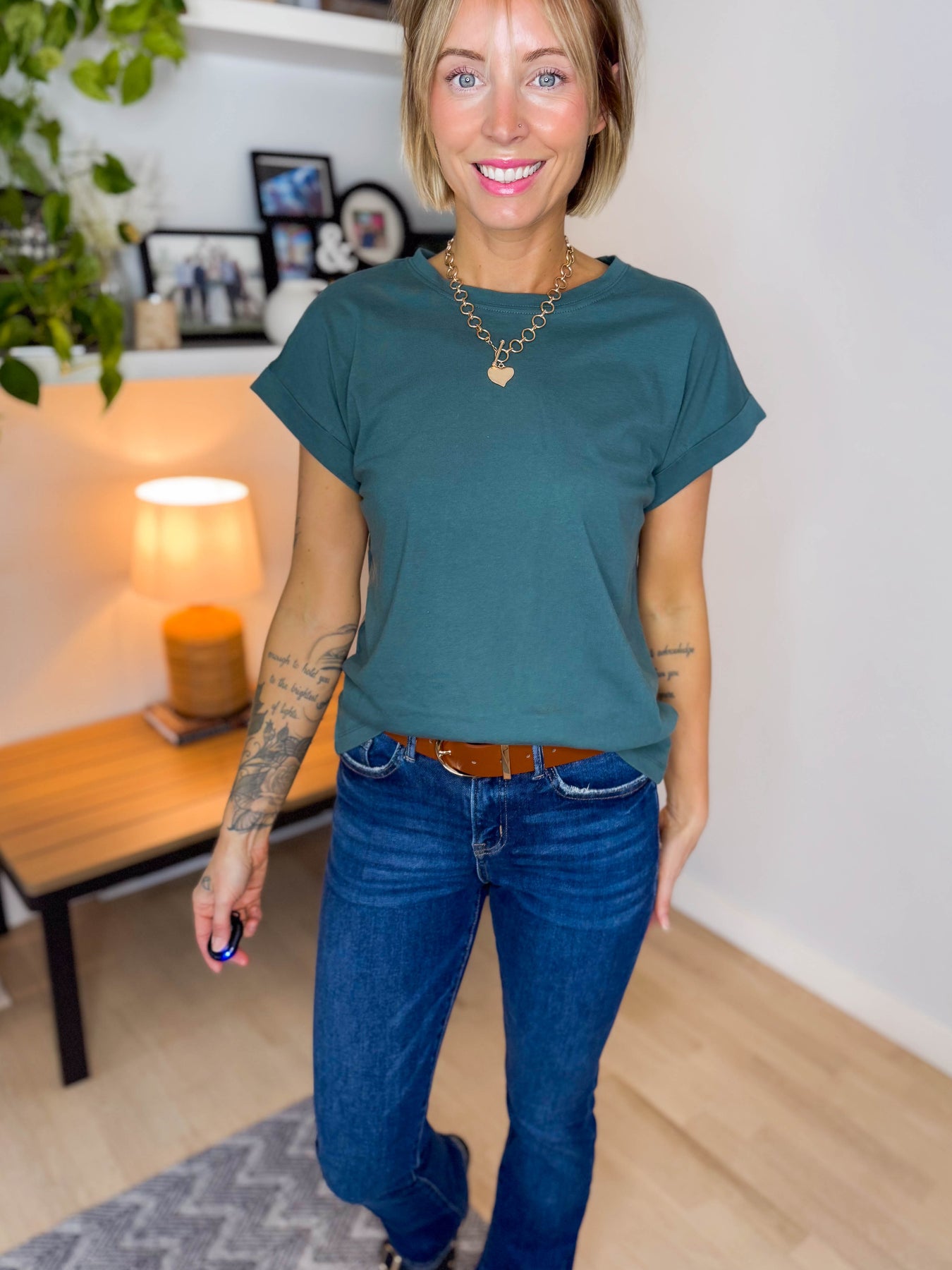 Addison Cotton Folded Sleeve T-Shirt- ASH JADE