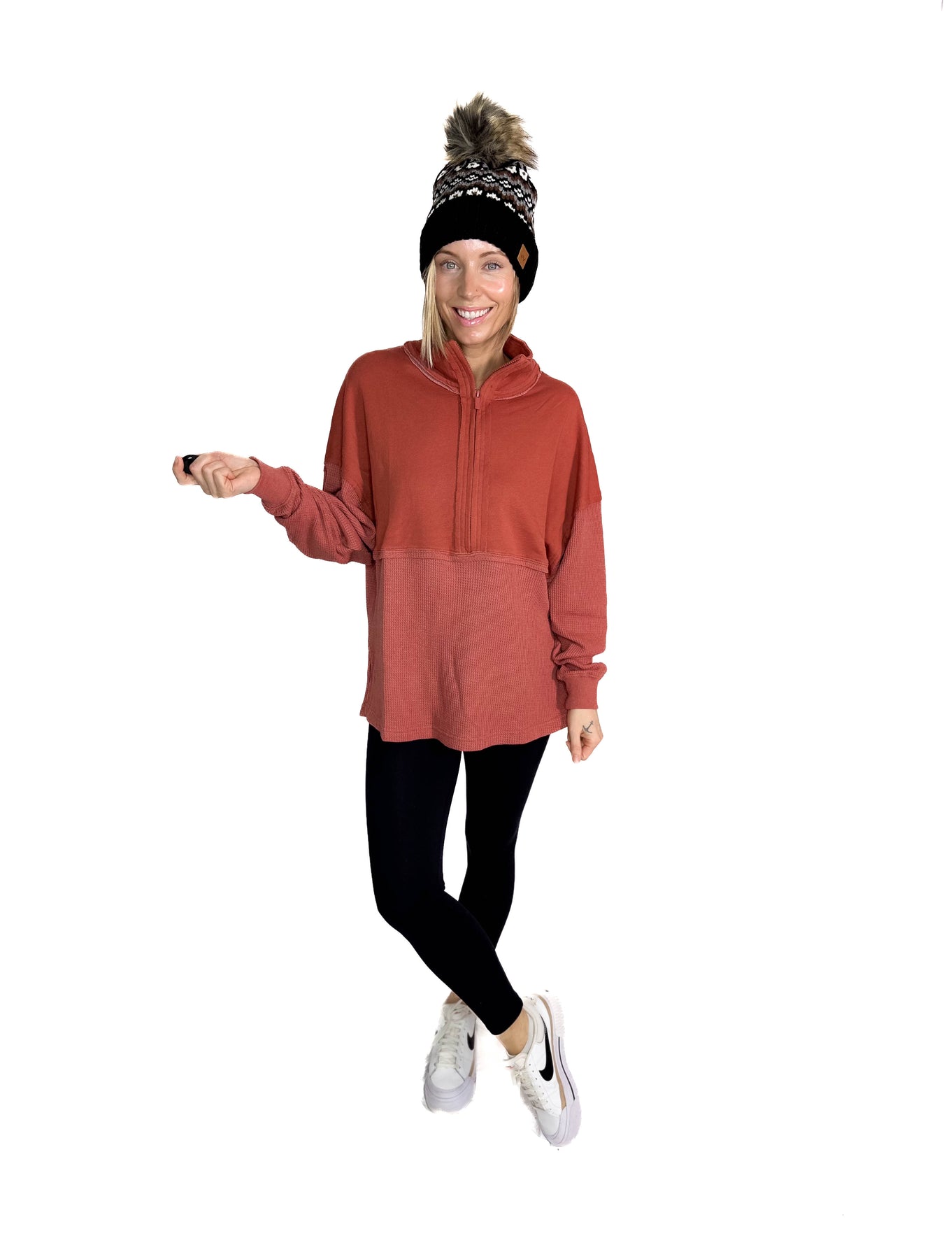 Arwen Waffle 1/4 Zip Pullover- RUST