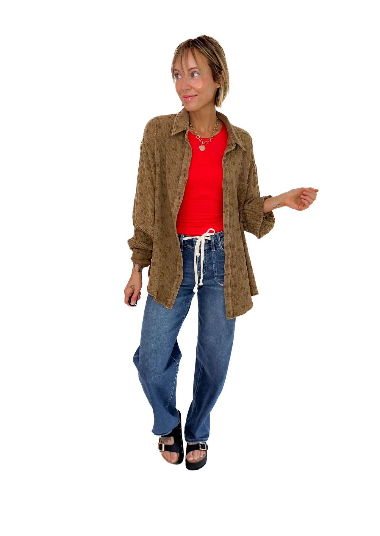 RISEN Harlet Tie Waist Relaxed Straight Leg- MEDIUM WASH