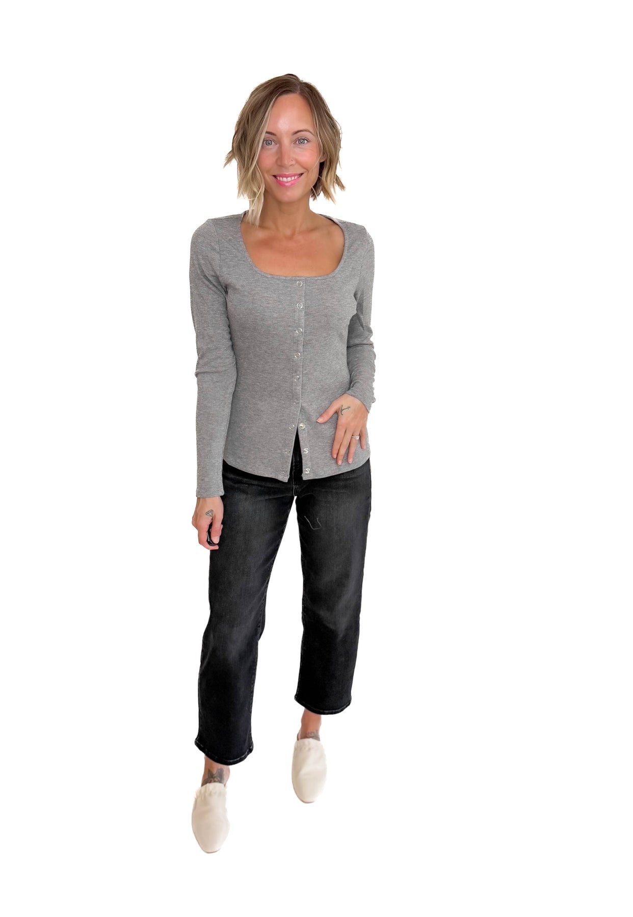 Jayda Long Sleeve Snap Button Cardigan- HTHR GREY