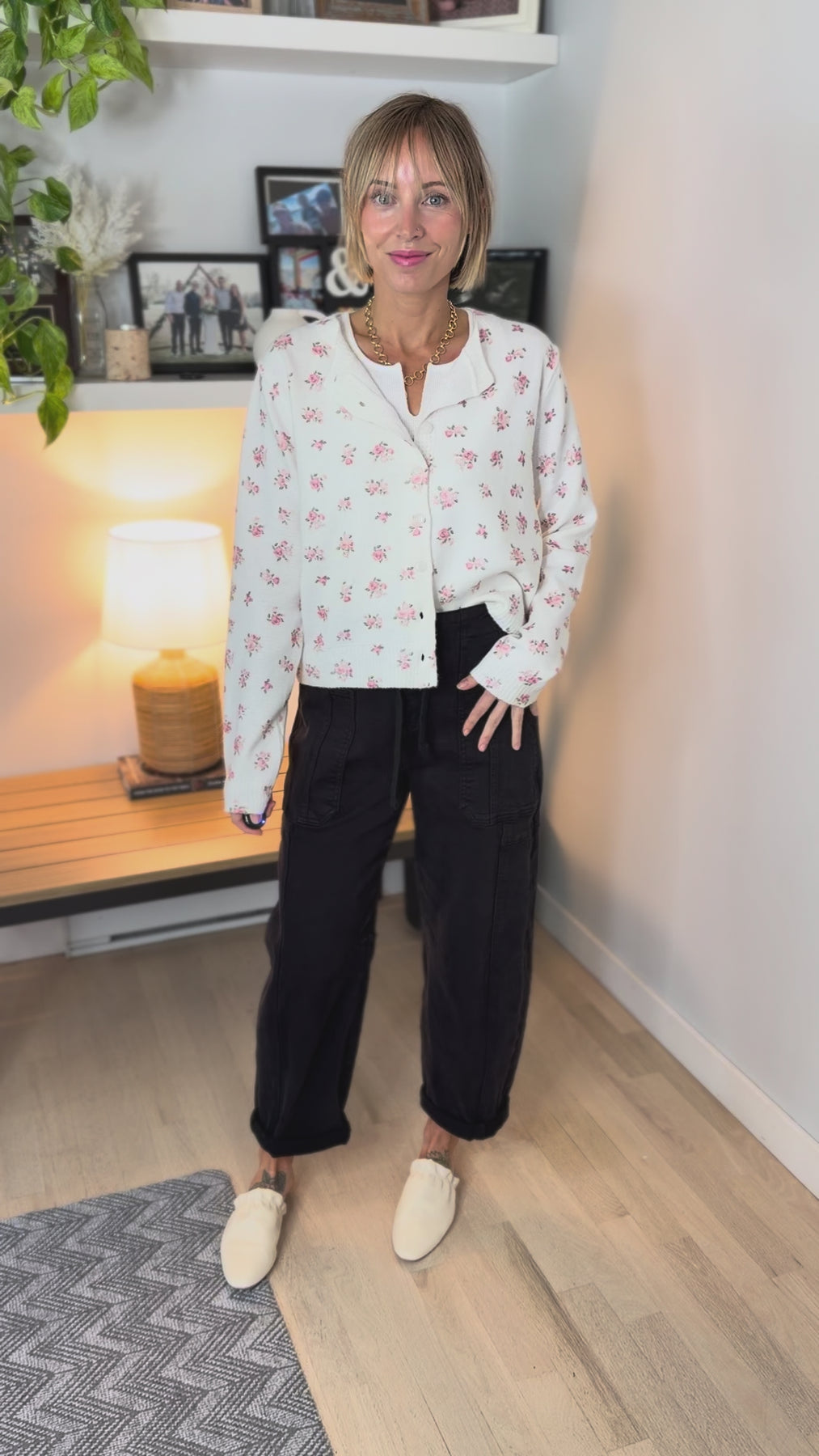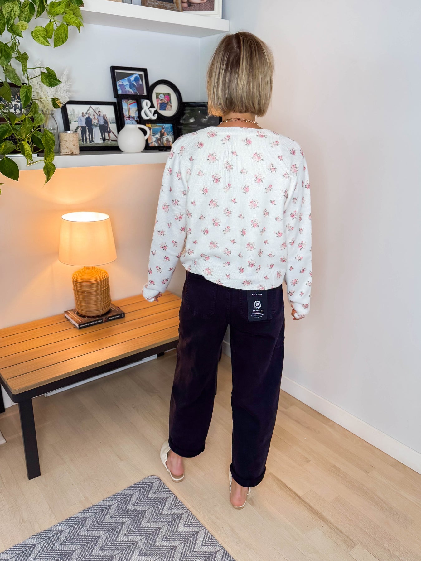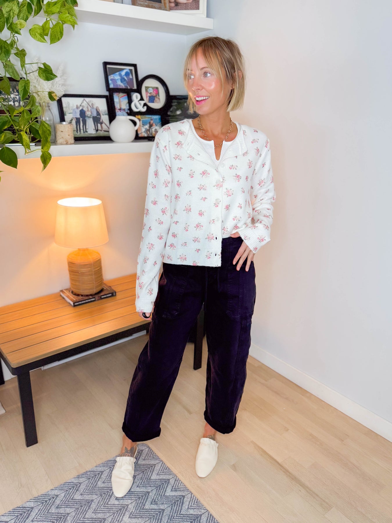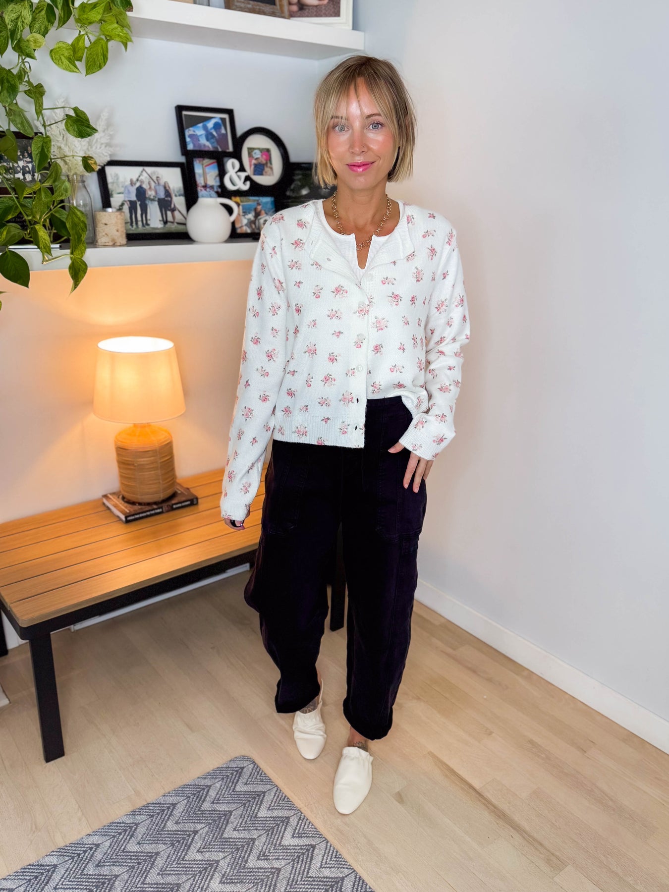 Fatima Floral Button Up Sweater Cardigan- OFF WHITE/PINK