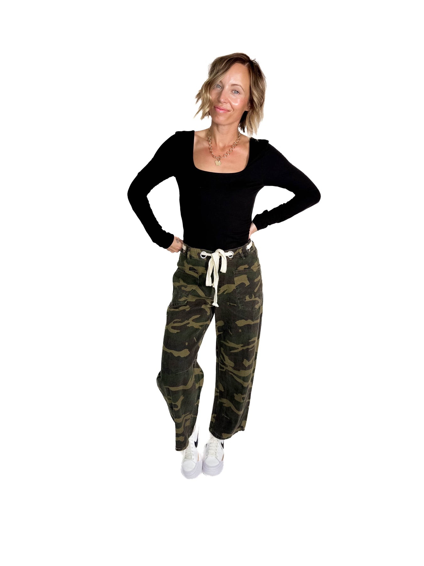 - Flattering square neckline in both front and back