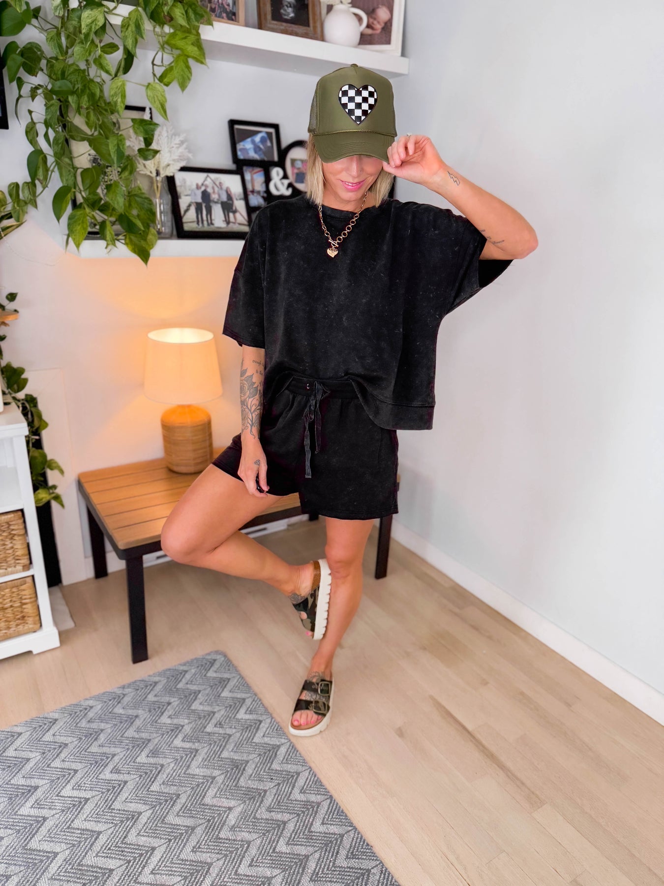 Checkered Heart Patch Trucker Hat- OLIVE GREEN