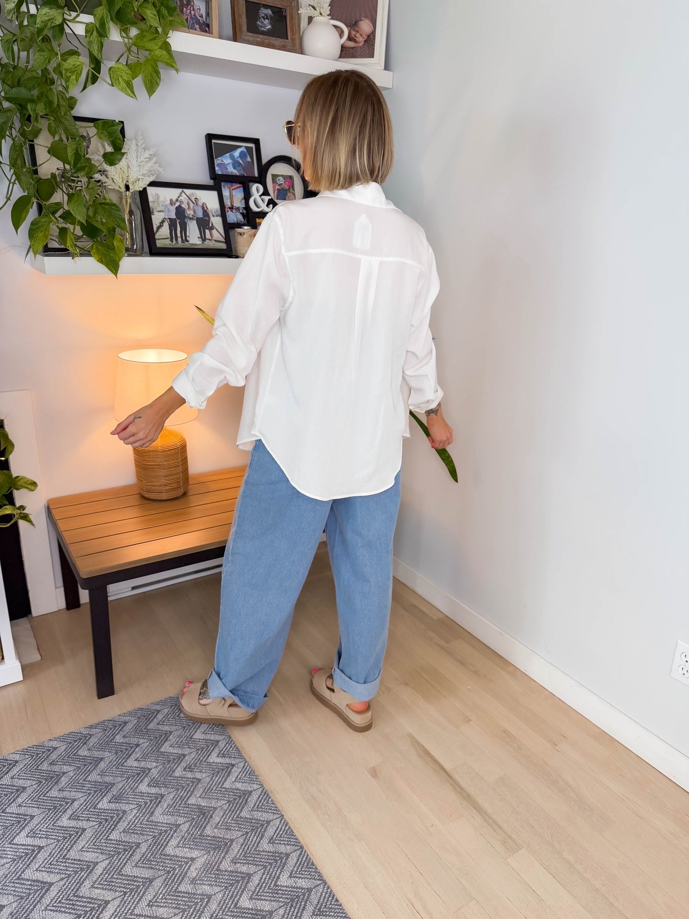 Novie Linen Blend Button Down- WHITE
